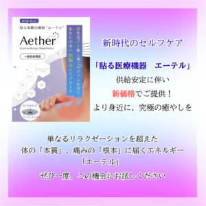 この度、「貼る医療機器 エーテル」が、供給安定に伴い、新価格にてご提供できることになりました!